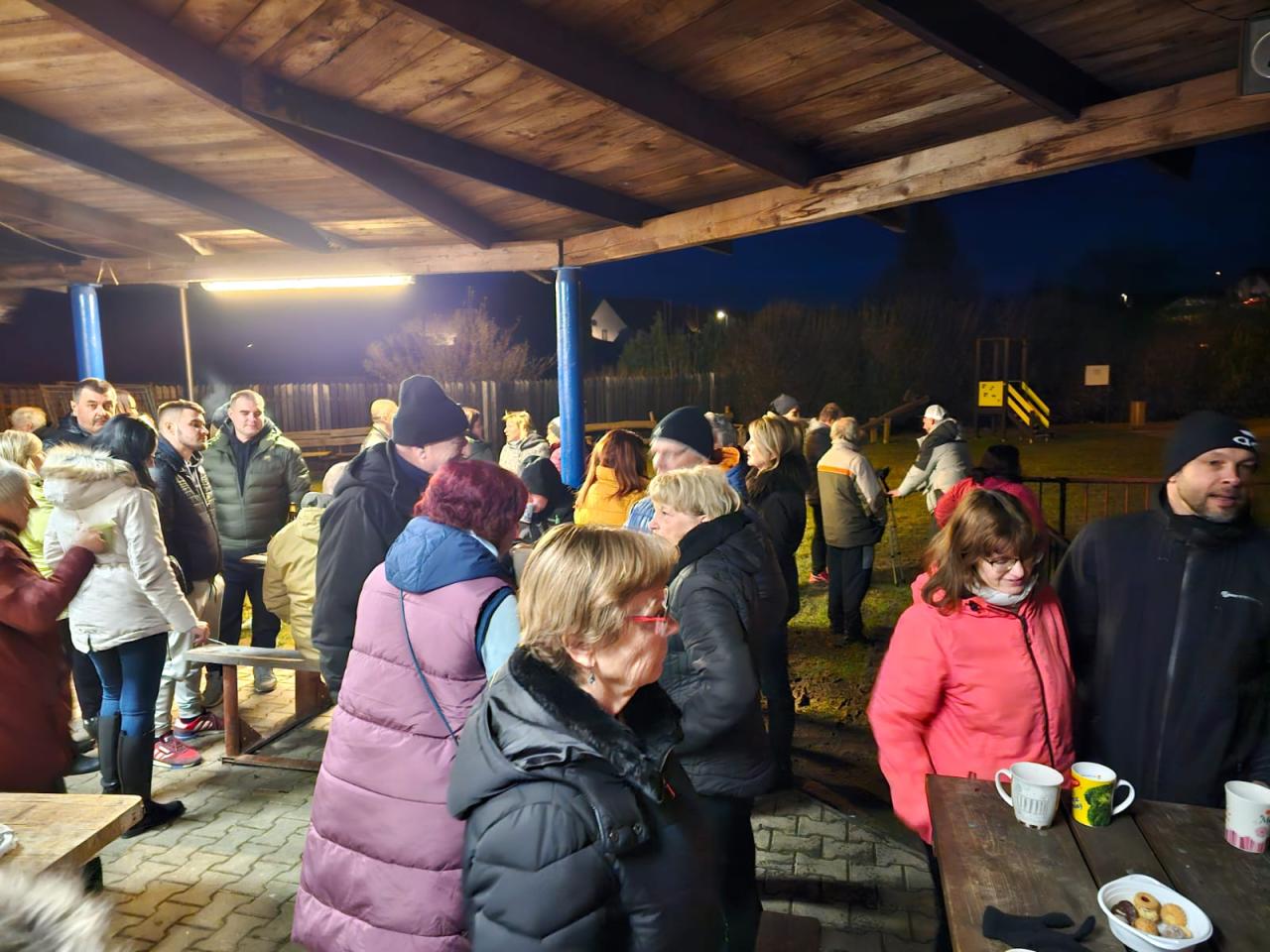 K dispozici byl pro přítomné připraven teplý svařák, klobása (tradiční fotbalovka), čaj, káva a něco sladkého k tomu. Kromě toho jsme si promítli to, co jsme v tomto roce v obci dokázali a společně zažili. Rozloučili jsme se ohňostrojem, kterým jsme současně i přivítali nový rok 2024.