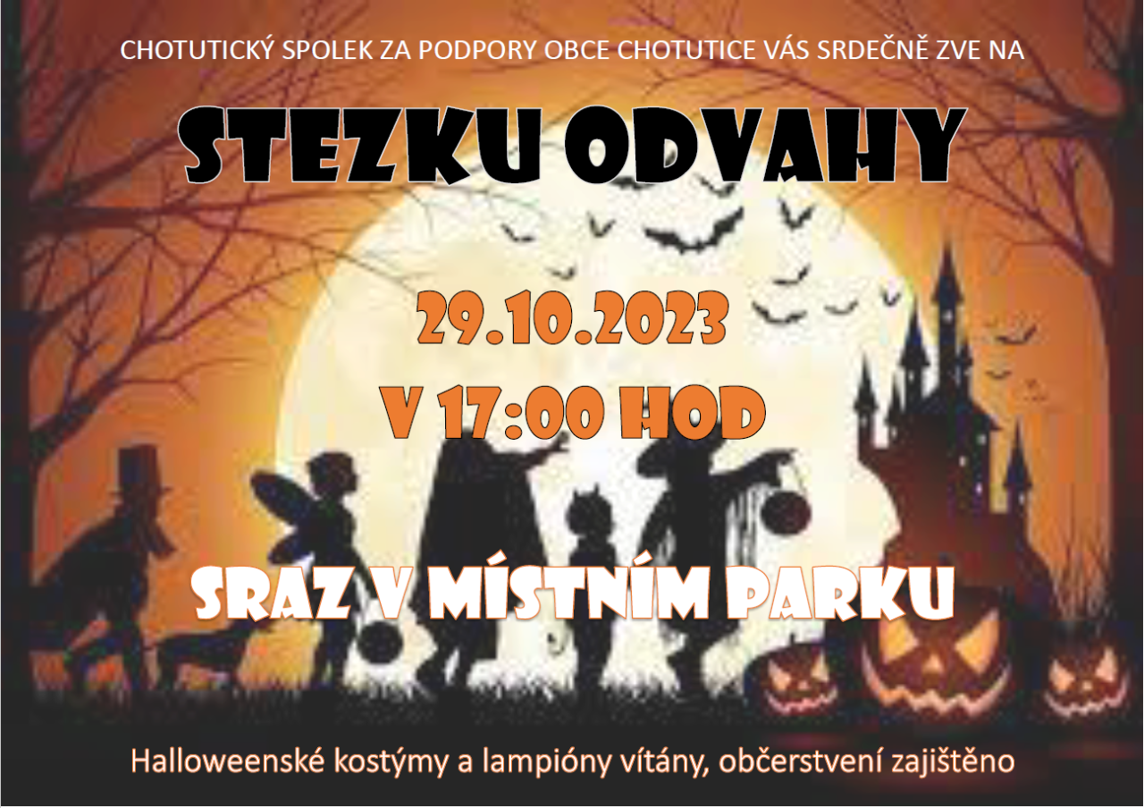Již podruhé jsme v naší obci uspořádali dětskou akci "STEZKU ODVAHY". Začínali jsme v parku, kde jsme dětem rozdali svítící náramky, aby se nám naši malý účastníci cestou někde neztratili