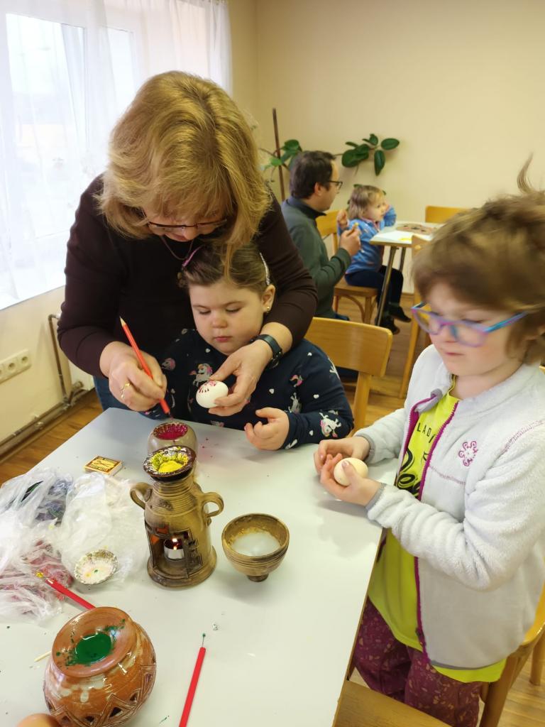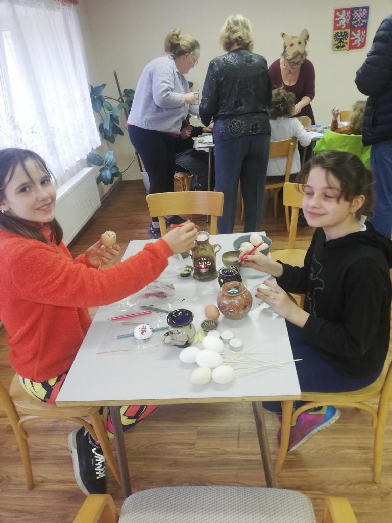 V průběhu odpoledne se barvila vajíčka voskem a tradičním způsobem jako je například barvení vajíček cibulí. Zároveň si chlapci mohli za pomoci strejdy Rudy uplést svou vlastní pomlázku. Děti také společně se svými rodiči a prarodiči tvořily, stříhaly, lepily a odměnou byly krásné výrobky, dobrá nálada a něco sladkého na zub.